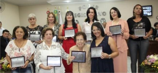Como de costume, cada vereador indicou um nome feminino para receber a honraria. Neste ano, receberam as homenagens as senhoras: Professora Alice Cerávolo Paoliello, indicada pelo vereador Reginaldo Esaú dos Santos; Aparecida Tavares da Silva, homenageada pelo Vereador Cleber de Oliveira Marcon; Professora Beatriz Maria Maciel Salvador, indicada pelo Vereador Cristiano Carvalho de Almeida Lima; Celina Aparecida de Jesus Canaverde, que recebeu indicação do Vereador José Donizete Otávio; a empresária Idelma Bueno de Melo Costa, indicada por Lucas Otávio Machado; Maria do Carmo da Silva, homenageada pelo Vereador Daniel Eduardo Ferraz; Maria Mary da Paixão, que recebeu indicação do Vereador João Batista Vasconcelos; Professora Nilza Maria de Paula, que recebeu a honraria das mãos do vereador Osmar de Lima Marques, que é o presidente da Comissão de Honrarias da Câmara; Sônia Margareth Siqueira Oliveira, homenageada pela Vereadora Silene Silvia Cerávolo Campedelli; e Vanilda Sandy Ferreira, que foi indicada pelo presidente da Câmara, Vereador João Batista Poscidônio.