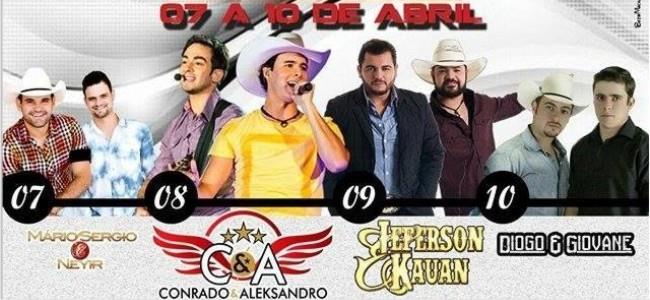 A abertura acontece no dia 07 de abril, quinta-feira, com show da dupla Mário Sérgio & Neyir e portões abertos. Dia 08, sexta-feira, o 3º Encontro de Campeões terá a participação da dupla de sucesso nacional Conrado & Aleksandro.